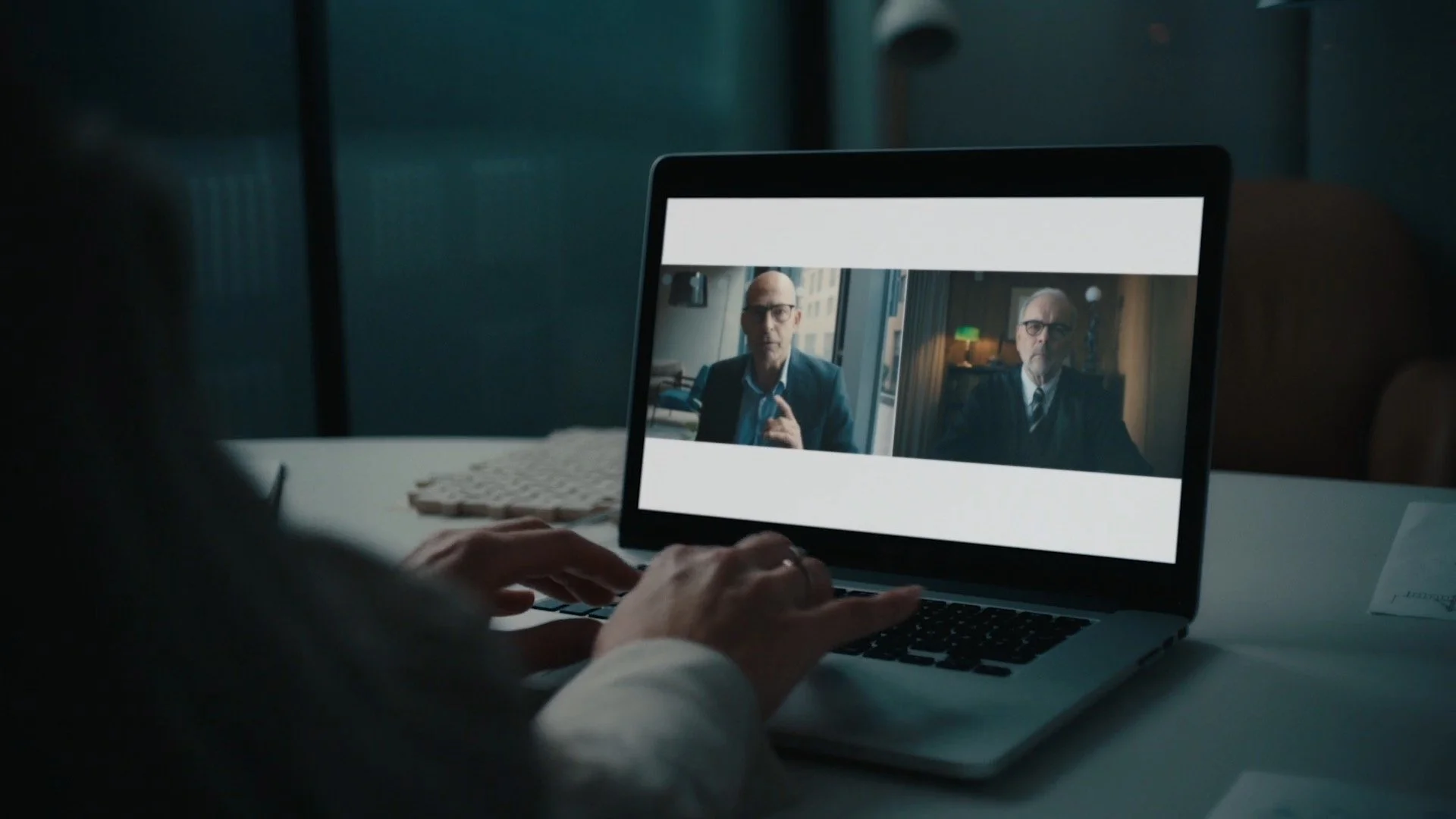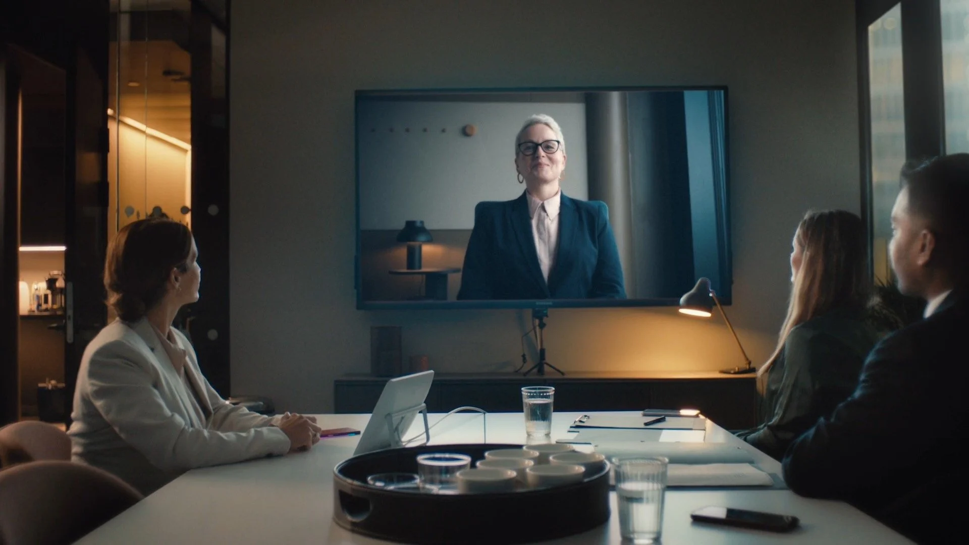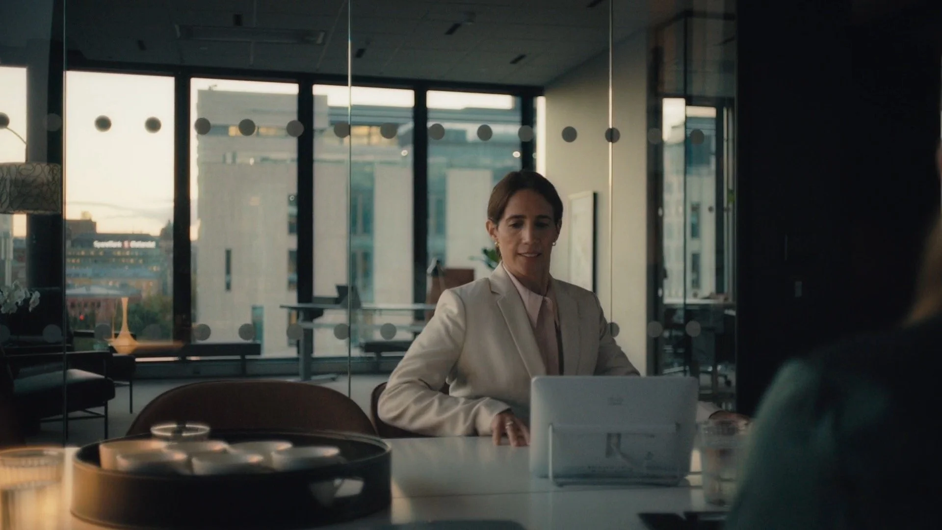Soft light over the city. Advisors collaborating around a table. Subtle shots of data visualizations, client meetings, and calm, confident gestures — pen on paper, a nod across the room. The city outside moves with quiet rhythm. Evening light reflects on glass buildings as the day comes full circle.